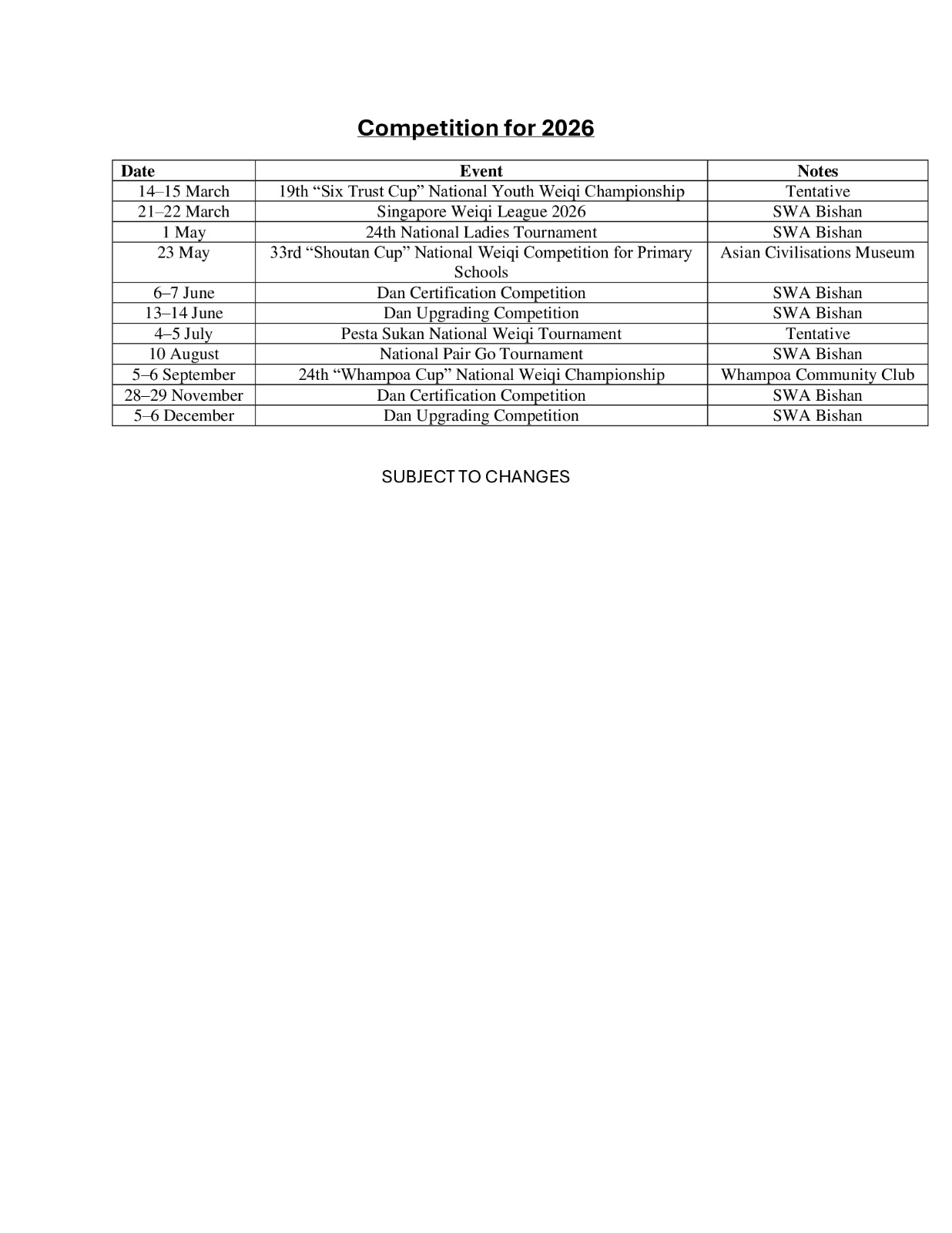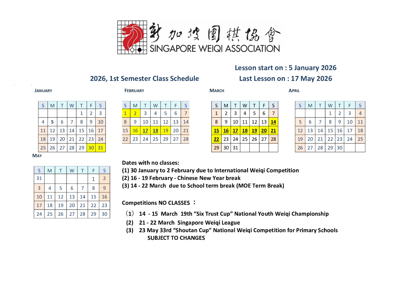 The 2026 First Semester Schedule and Competition Calendar are now released. Please refer to the images below: