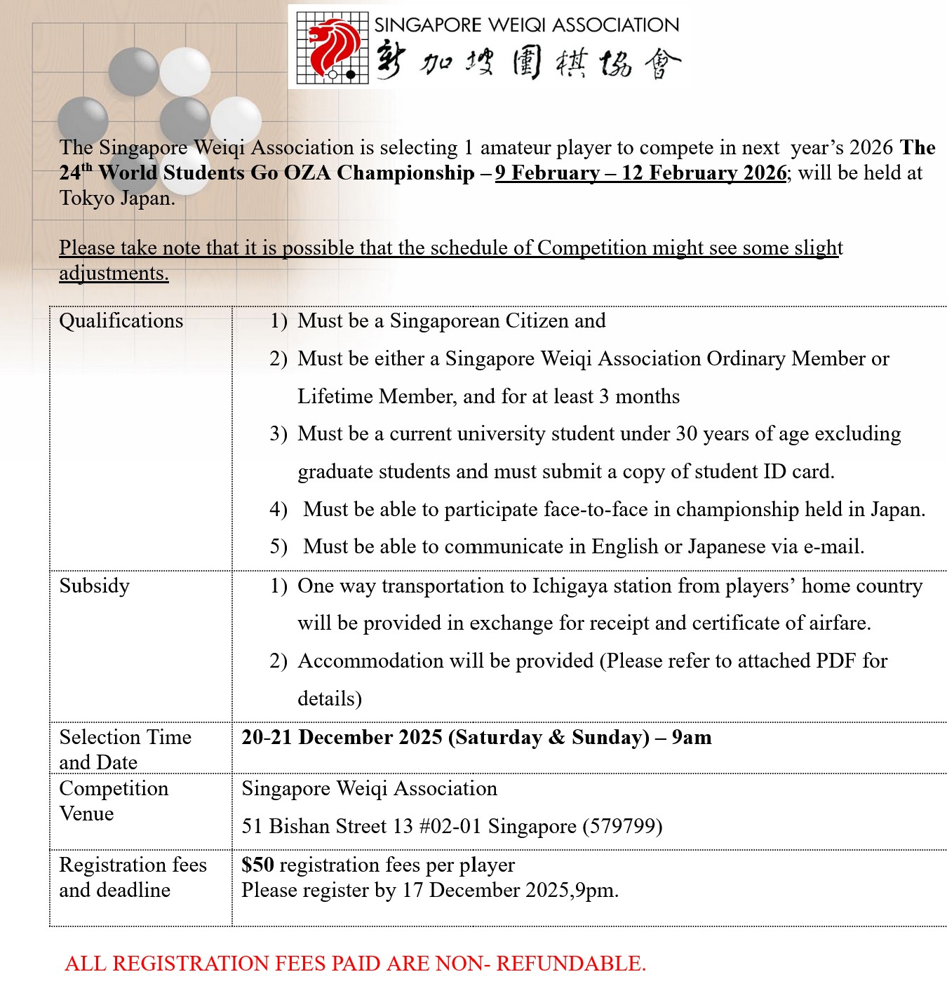 [Selection on 20 Dec 2025] 24th World Student Go OZA Championship