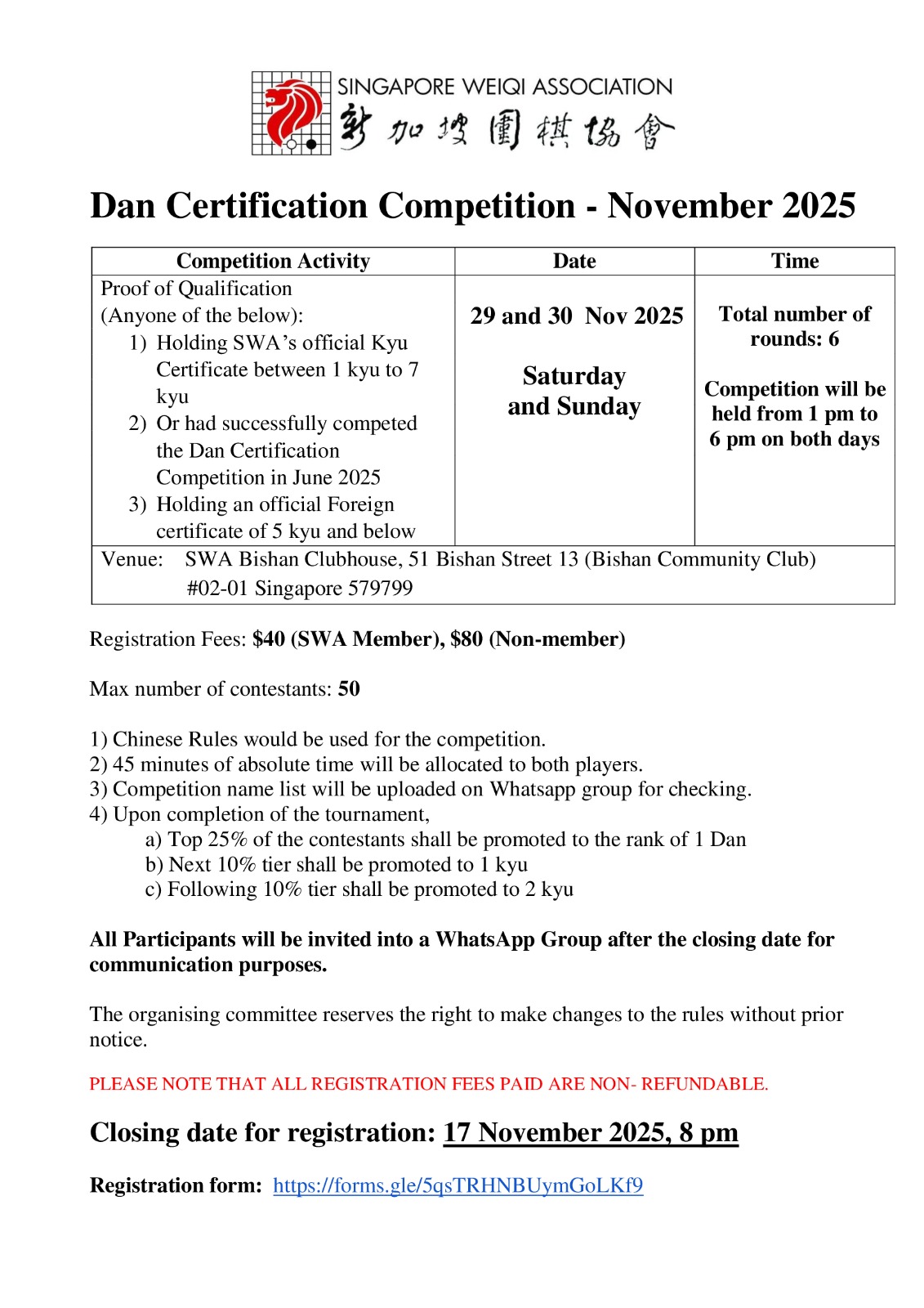 The tournament has concluded and here are the participants that will be promoted to Singapore Weiqi Association 1 Dan.